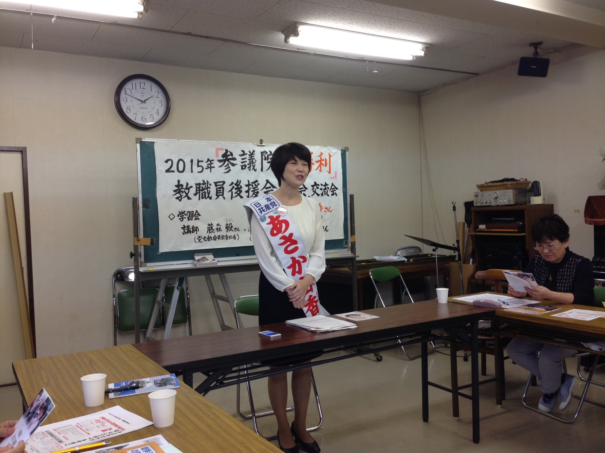 川崎市の教職員後援会で、参議院選挙神奈川選挙区のあさか由香さんが挨拶しました。